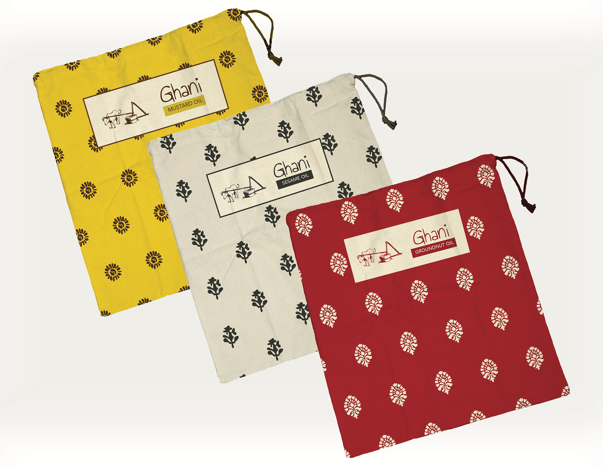 Packaging design for an Indian edible oil company. Extracting oil from seeds the old fashion way popularly known as 'GHANI' used in small villages, which has now become rare.